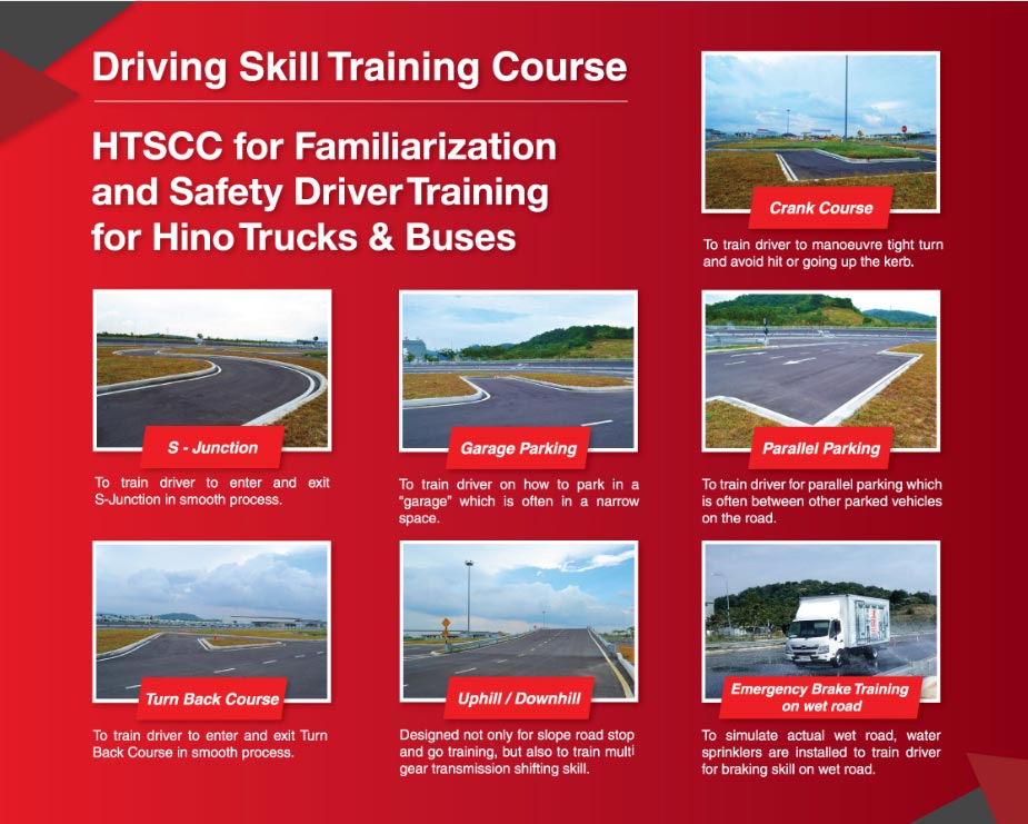 This module is most useful for owners, supervisors, drivers and mechanics who are first-time buyers of Hino vehicles. You will learn driving skills to properly operate your Hino vehicle and get accustomed to it. Lectures and practice sessions at the HTSCC Driving Track will go into details about vehicle specifications, features, vehicle devices, followed by a before-and-after evaluation session.